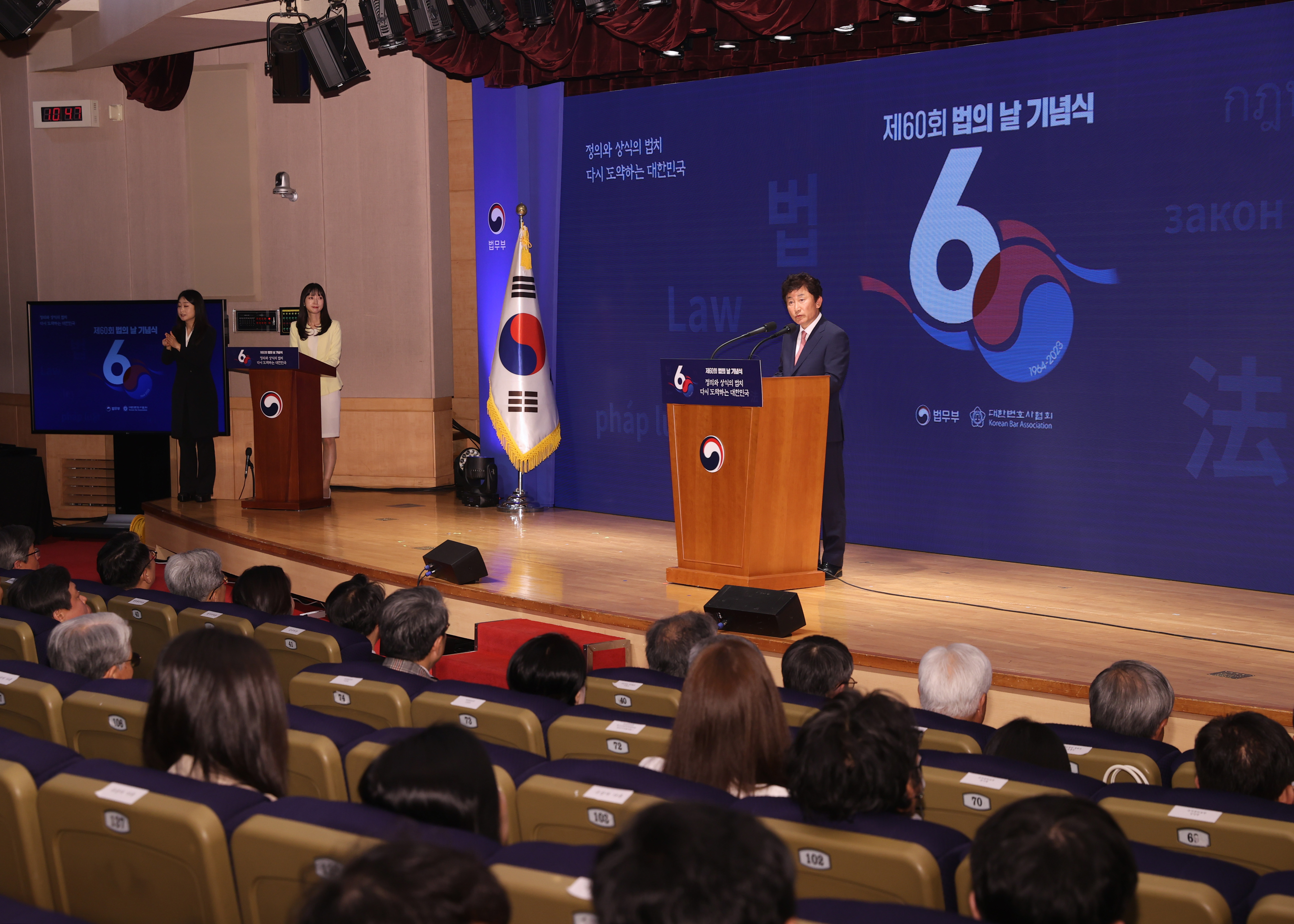 박종문 헌법재판소 사무처장은 25일 오전 10시 ‘정의와 상식의 법치, 다시 도약하는 대한민국’이라는 주제로 정부서울청사 별관 2층 대강당에서 열린 제60회 법의 날 기념식에 참석했습니다.