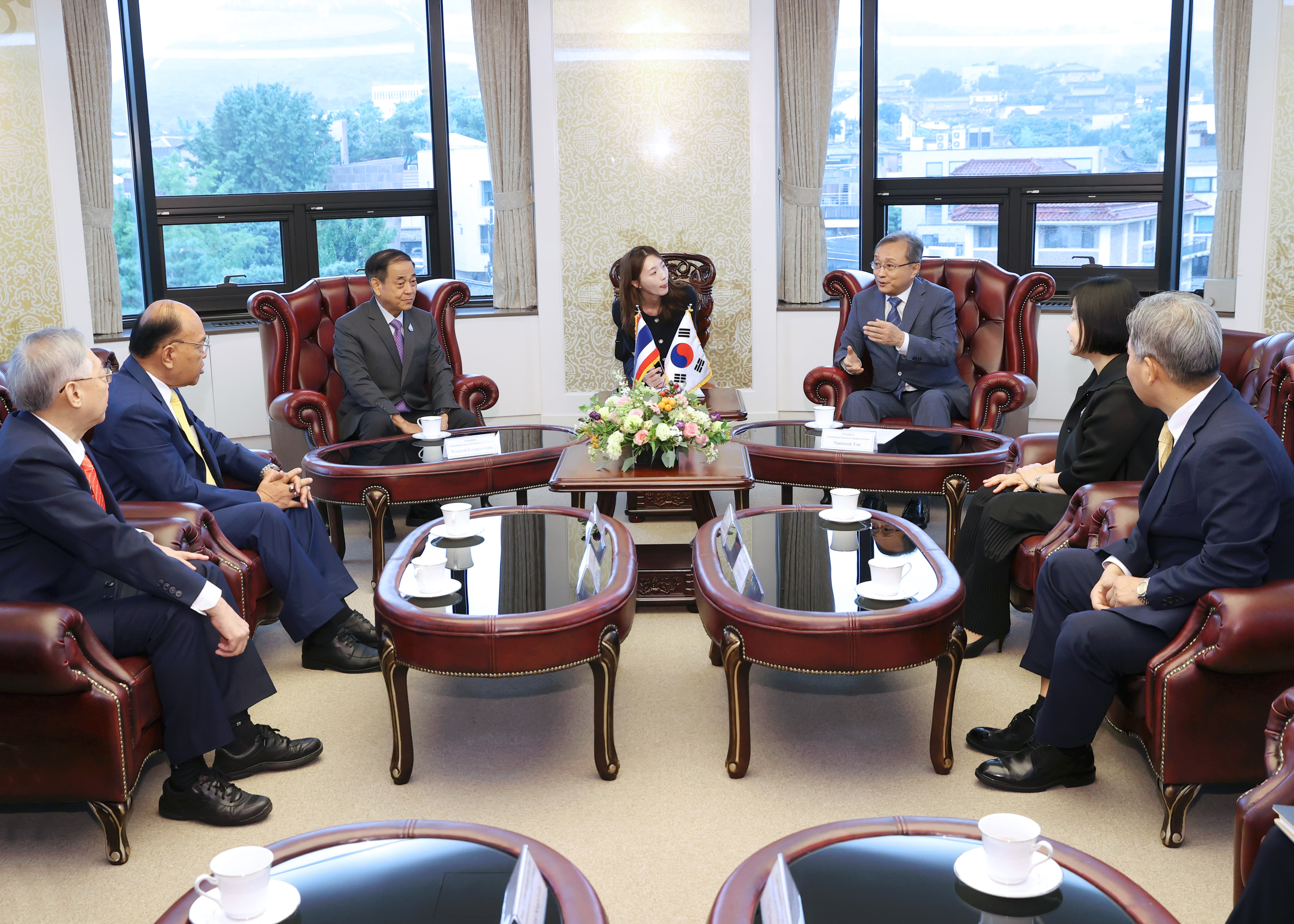 이날 태국 헌법재판소장은 재판관과 고위 공무원, 기업인 등으로 구성된 ‘민주주의를 위한 법의 지배’ 연수프로그램 참가자 49명의 방문단을 이끌고 재판소를 찾았습니다.