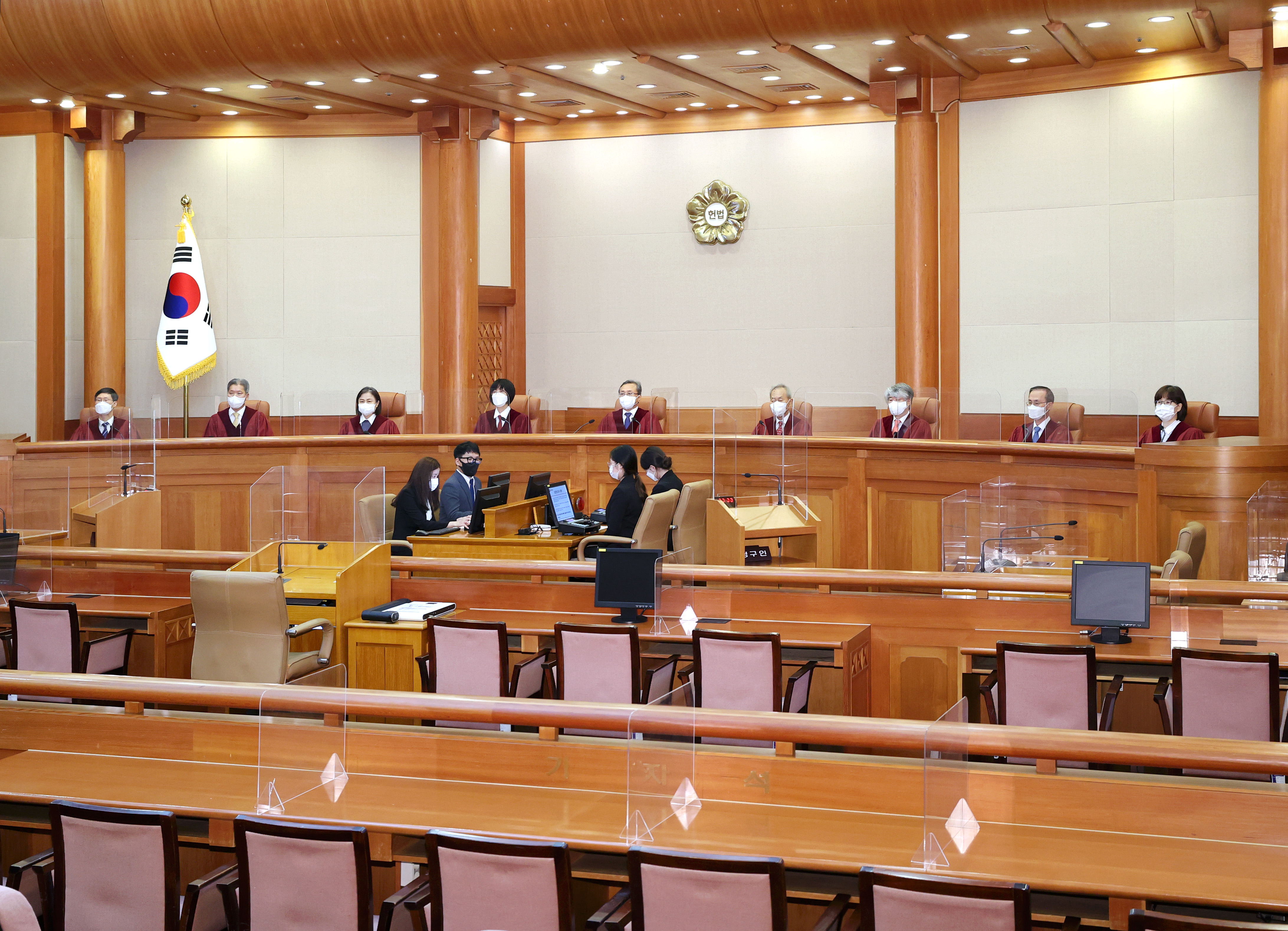 헌법재판소는 7월 21일 오후 2시 대심판정에서 ‘선거에 영향을 미치게 하기 위한 시설물 설치 등 금지 사건(2017헌가1 등)’의 헌법불합치 결정 등 총 40건의 결정을 내렸습니다.